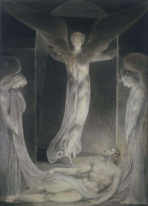 But Mary stood weeping outside the tomb, and as she wept she stooped to look into the tomb; and she saw two angels in white, sitting where the body of Jesus had lain, one at the head and one at the feet.